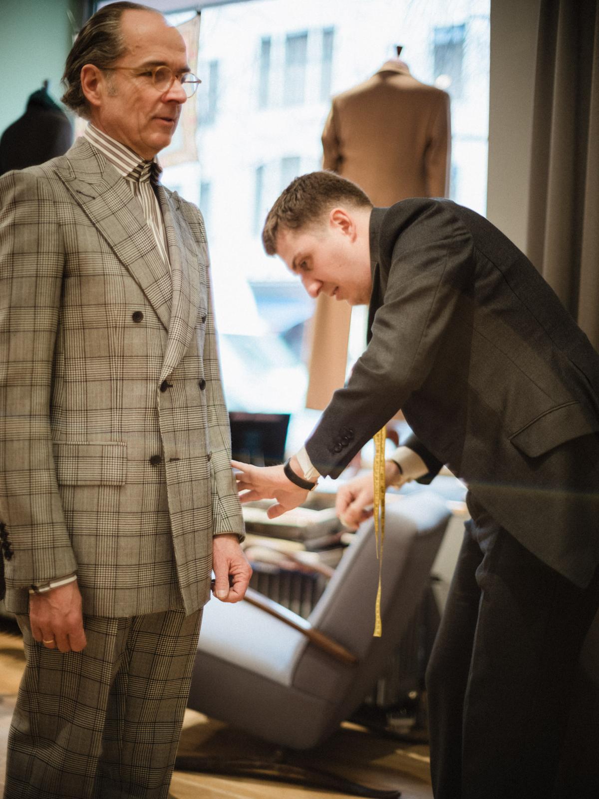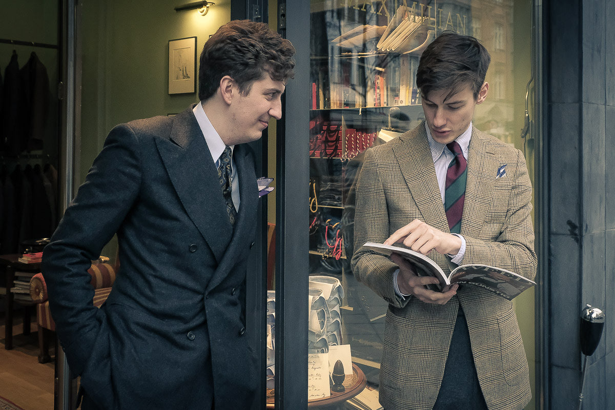Having reached a certain point and moved into a larger apartment within the capital, the stupid young man decided that he could actually give it a try, to pursue his passion for business. One thing was clear to him at the moment of his decision: if he wanted to try it, books would eventually no longer be of any use. He had to get to the epicenter. So he decided to travel to the distant island and visit the masters he idolized. Very intimidated by the histories of the houses—he knew them inside and out; and the fact that he had already gotten lost on the island years before during a cloak-and-dagger operation, advertising at every doorstep in the tailor's mile, didn't exactly diminish his feeling of being in charge—he chatted with the tailors to introduce his local readership to timeless style. Contrary to the stupid young man's assumption, each of the tailors was very friendly and revealed their secrets to him. In particular, the young, stupid guy's biggest idol was incredibly helpful and showed the previously inexperienced guy many tricks and tips.