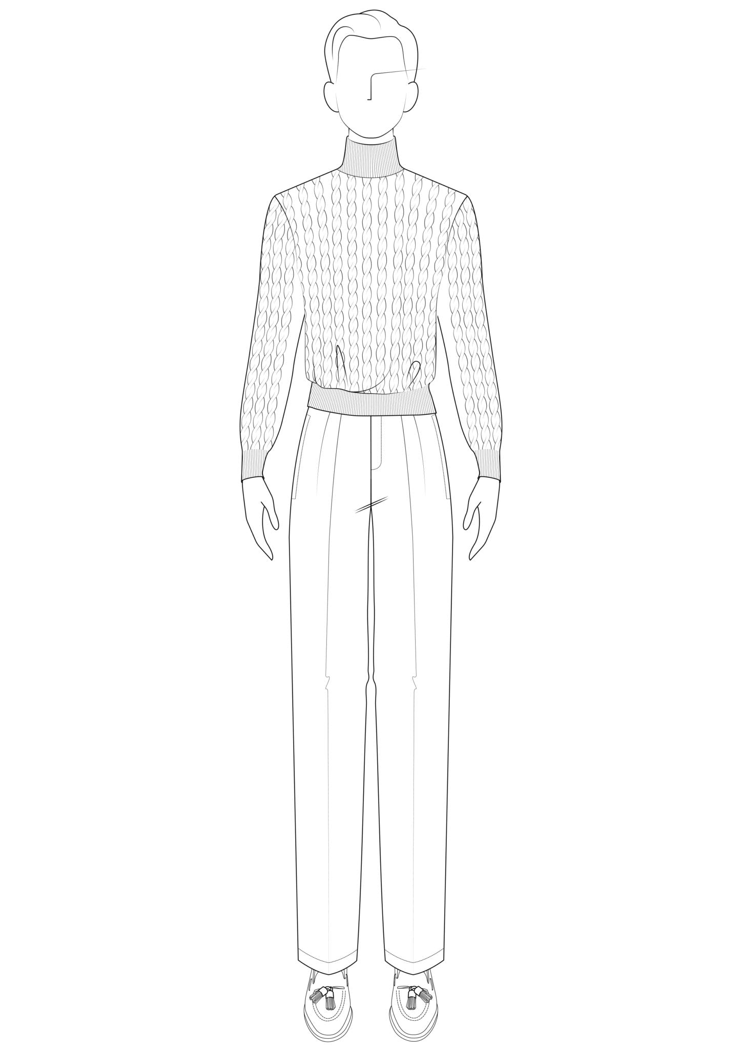 Our knitwear is cut short to match our high-waisted trousers. At the same time, we offer our knitwear to suit every body type: Longer sleeves for long people, shorter sleeves for those who are not so long. You can find exact measurements in our size chart.